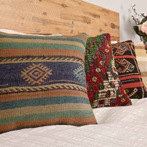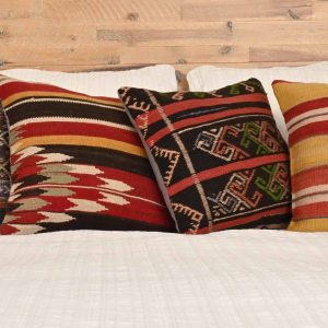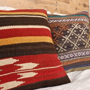 Our range of Turkish Kilim Cushions are created from handwoven vintage kilim rugs from the Anatolian region of Turkey. Because most of the rugs used are between 20-50 years old, each cushion has its own unique character.