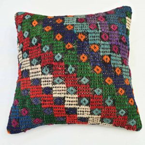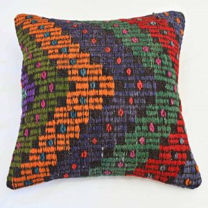 - Our kilim cushions are made from vintage Anatolian kilim rugs. Each pillow is handmade and one of a kind. Size: 16 x 16 inches / 40 x 40cm Cover Front Side: Vintage Anatolian kilim rug. Cover Back Side: Cotton Fabric with hidden zipper Dry Clean Only. Made in Turkey. Inserts are filled with 100% PET fibre, which is derived from recycled water bottles.