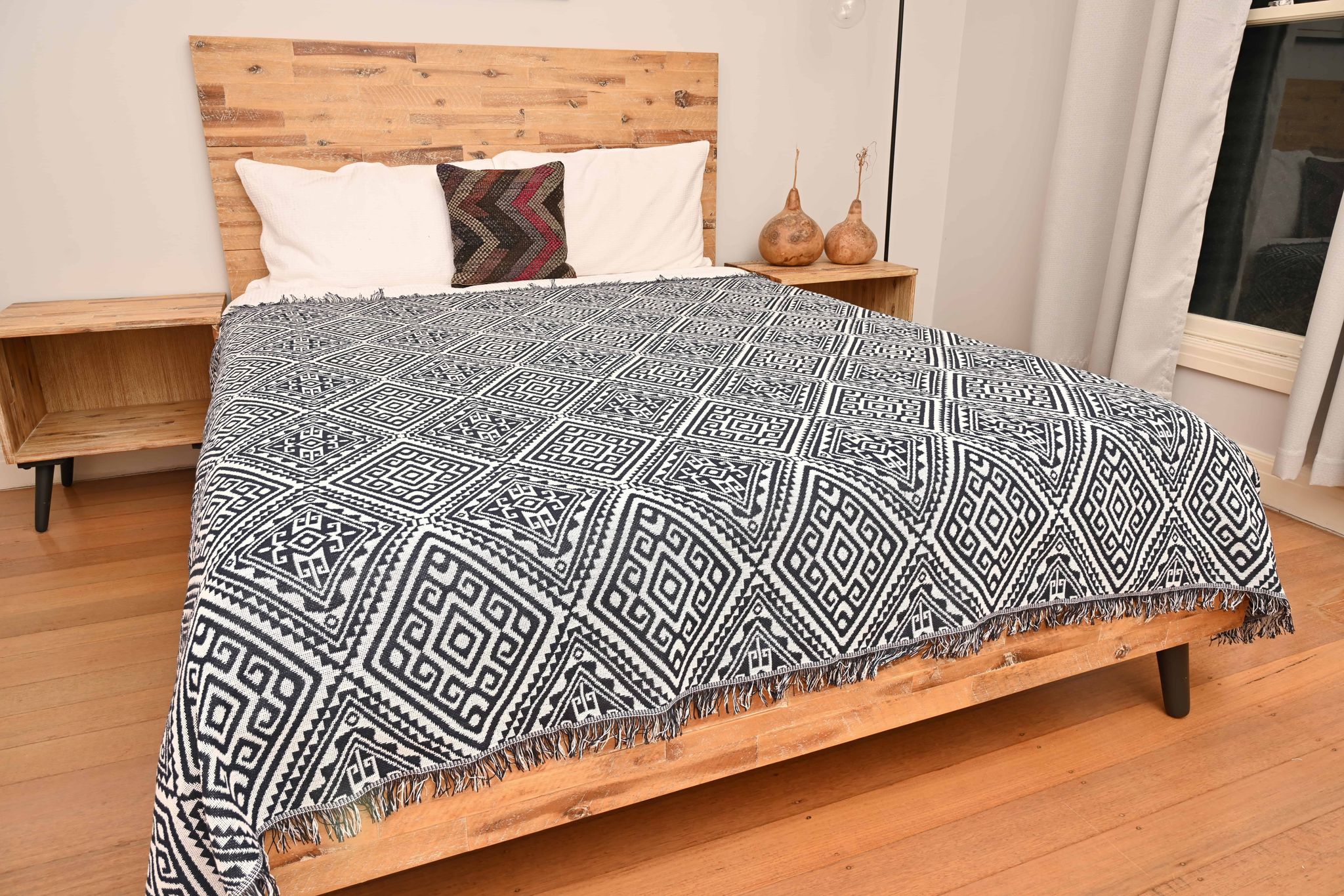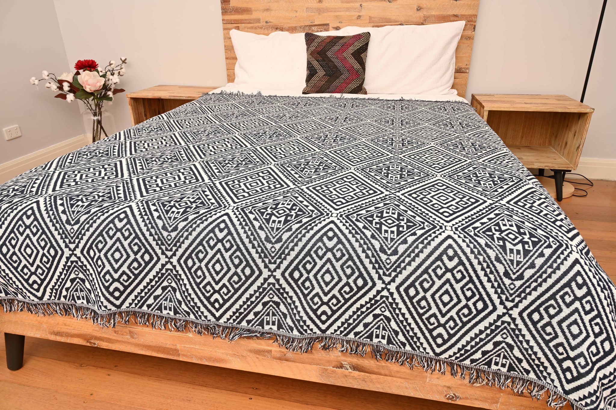 Our Black & White Patterned Throw has a clean and modern design, great for use as a throw over your lounge or as a bedspread.