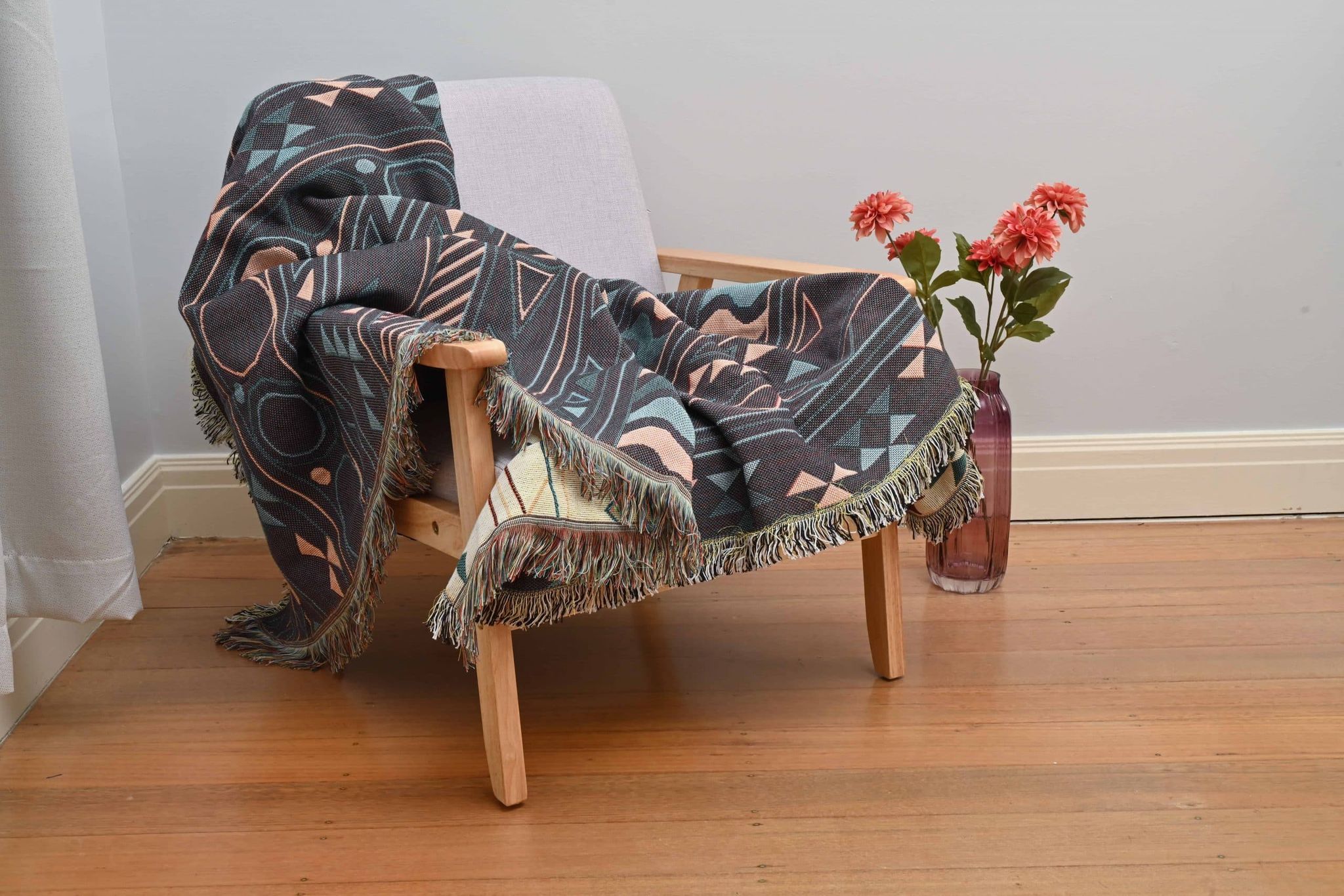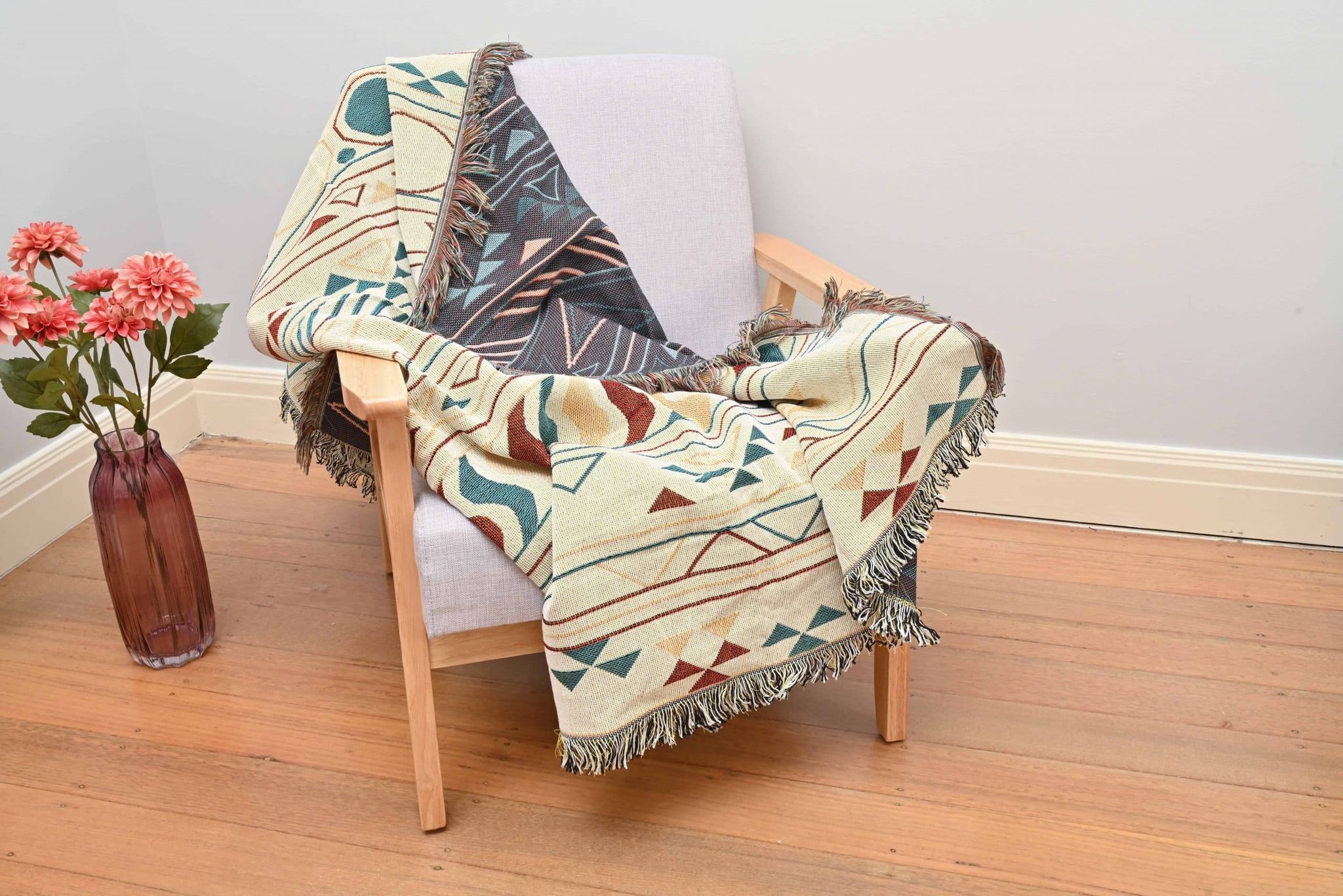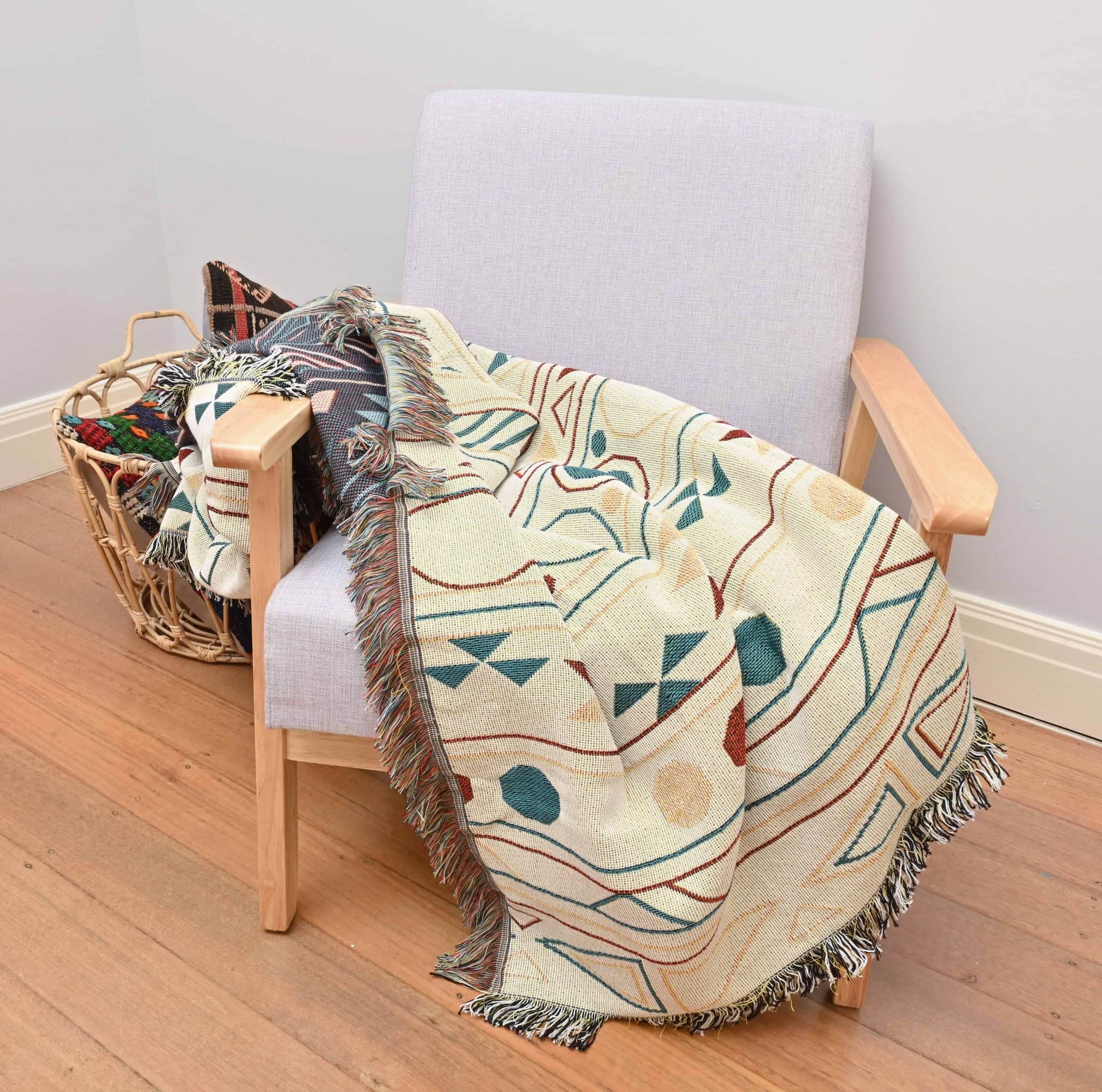 Our geometric patterned throw is reversible to switch it up with your mood!