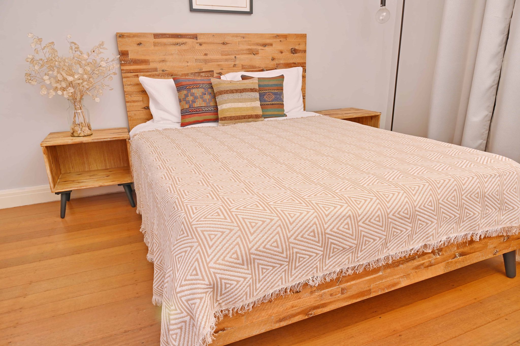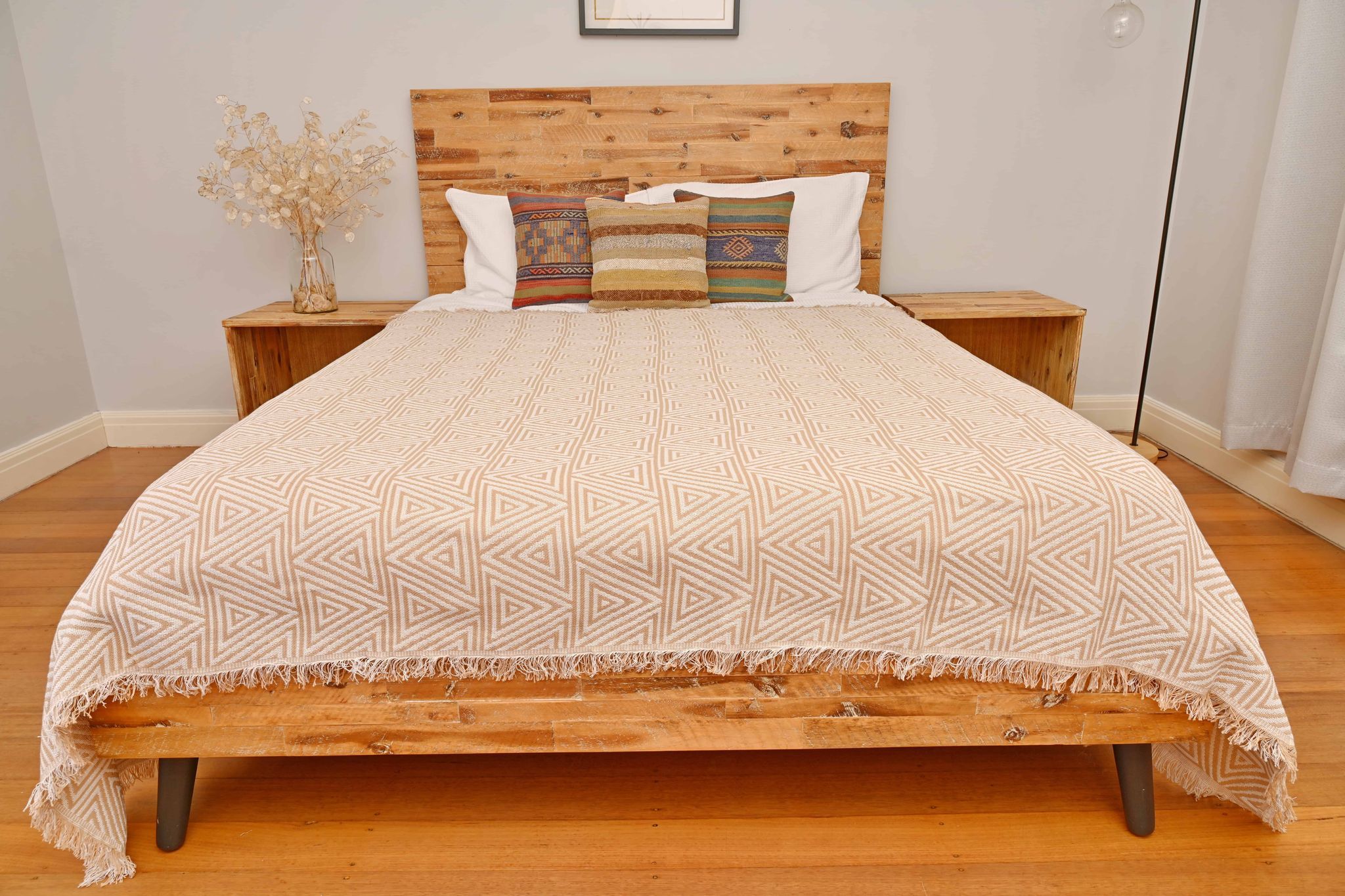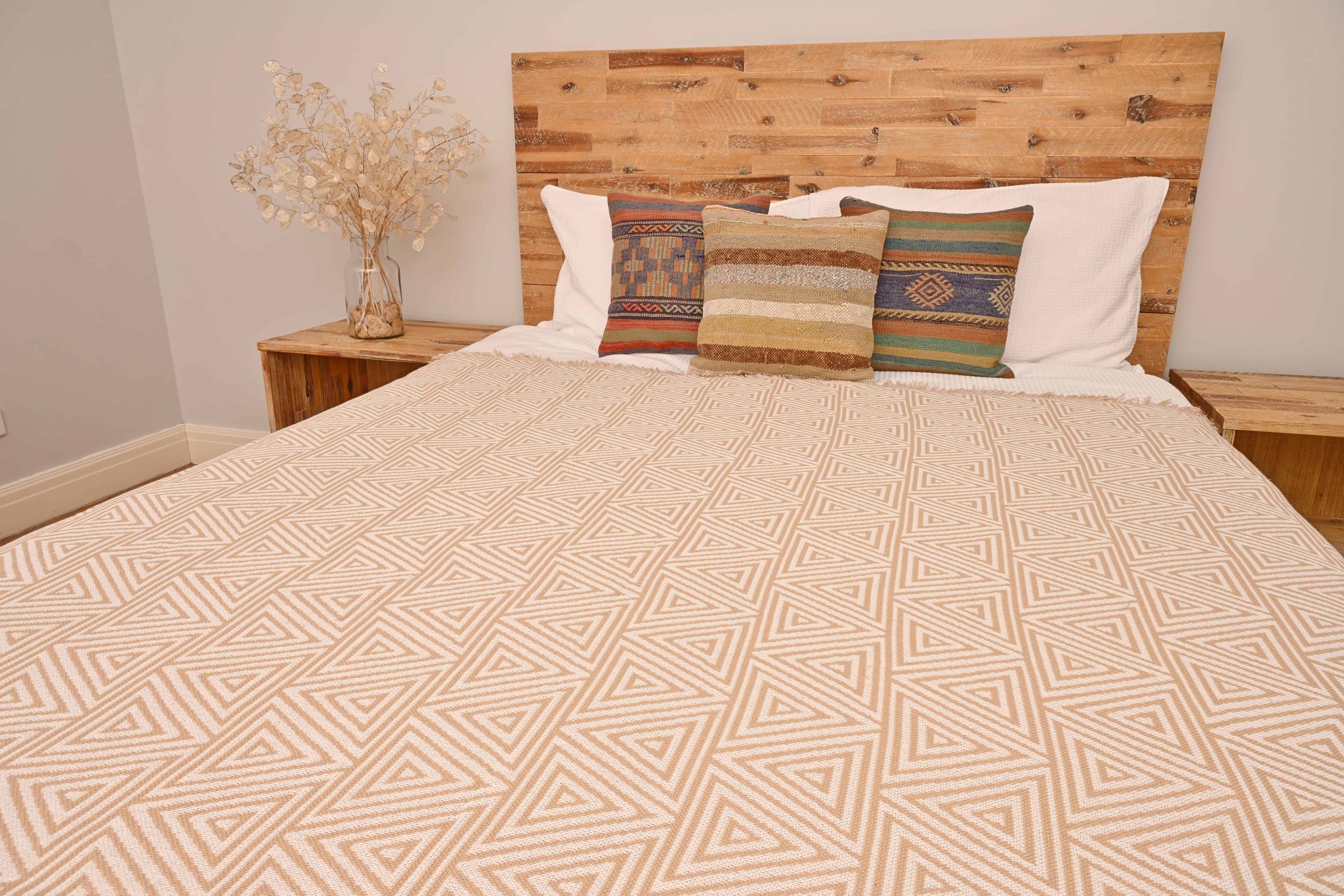 Our Geometric Tan Monochrome Throw has a clean and modern design, great for use as a throw over your lounge or as a bedspread.
