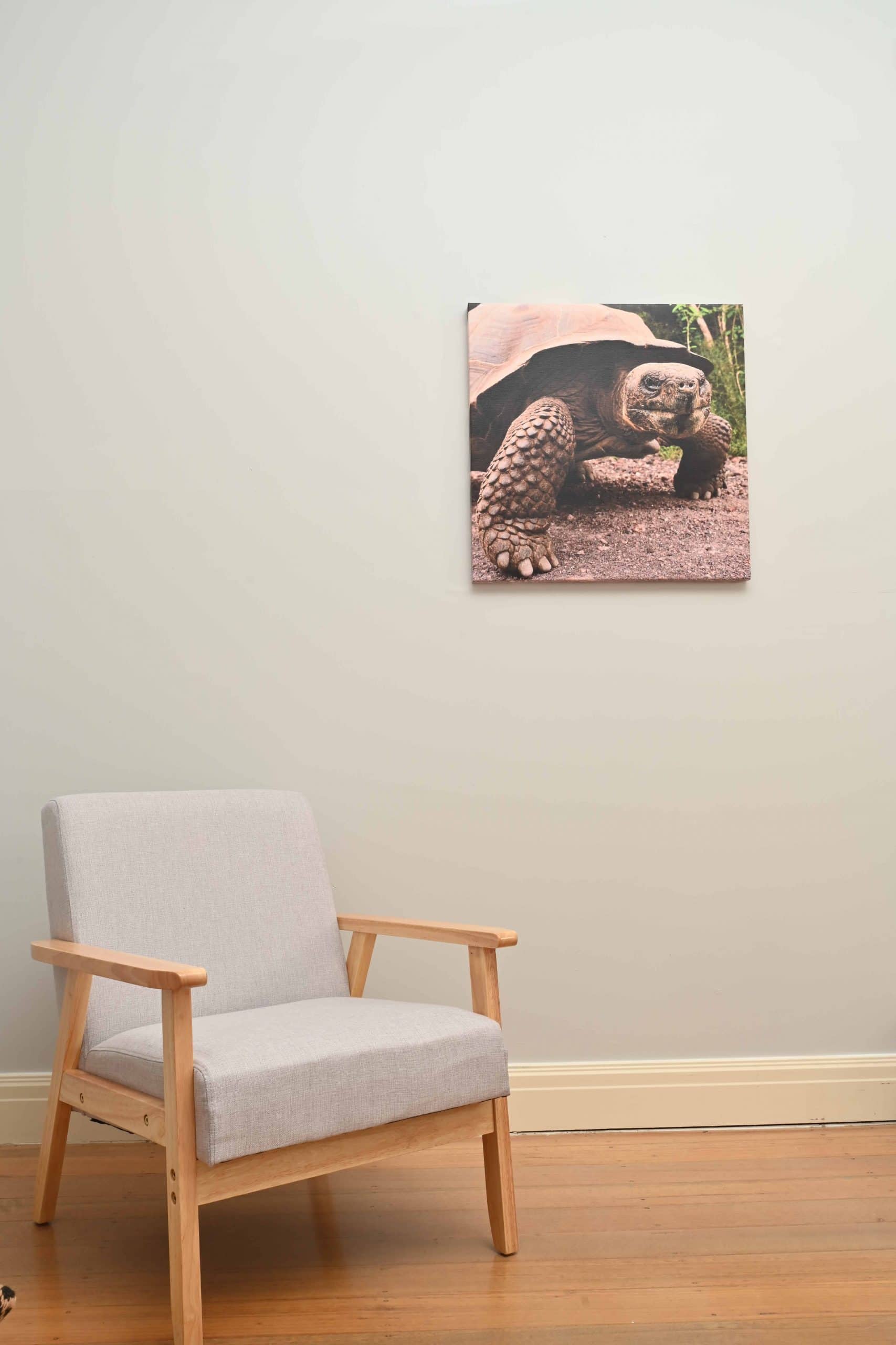 Hang our gorgeous photograph of a curious giant Galapagos tortoise to add some character to your wall.