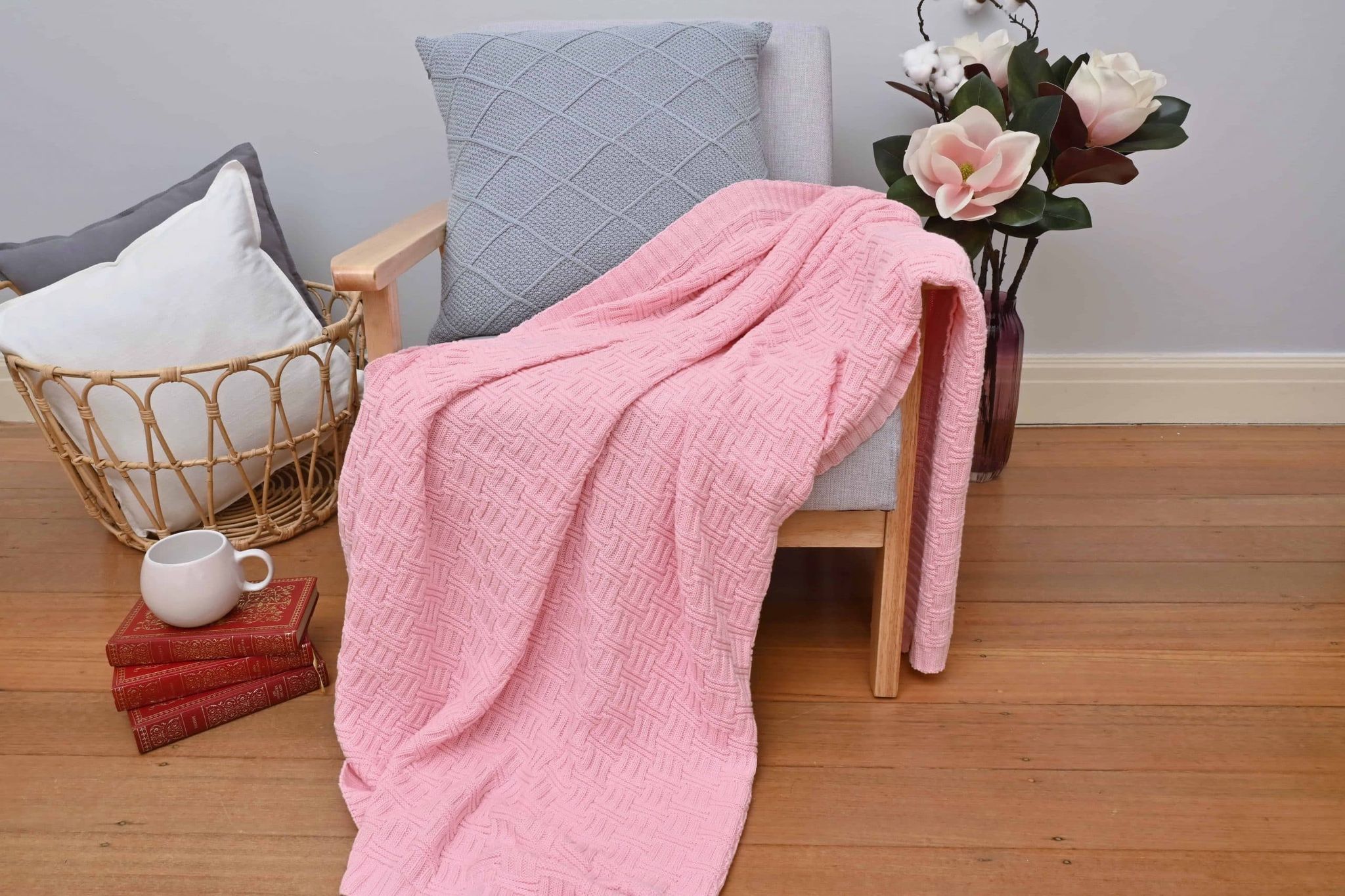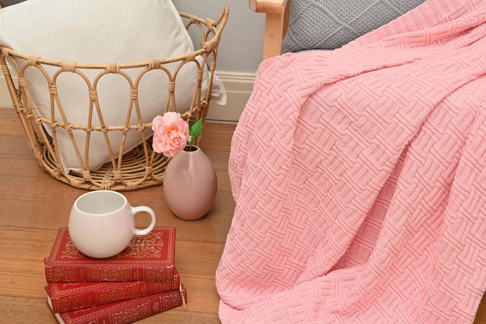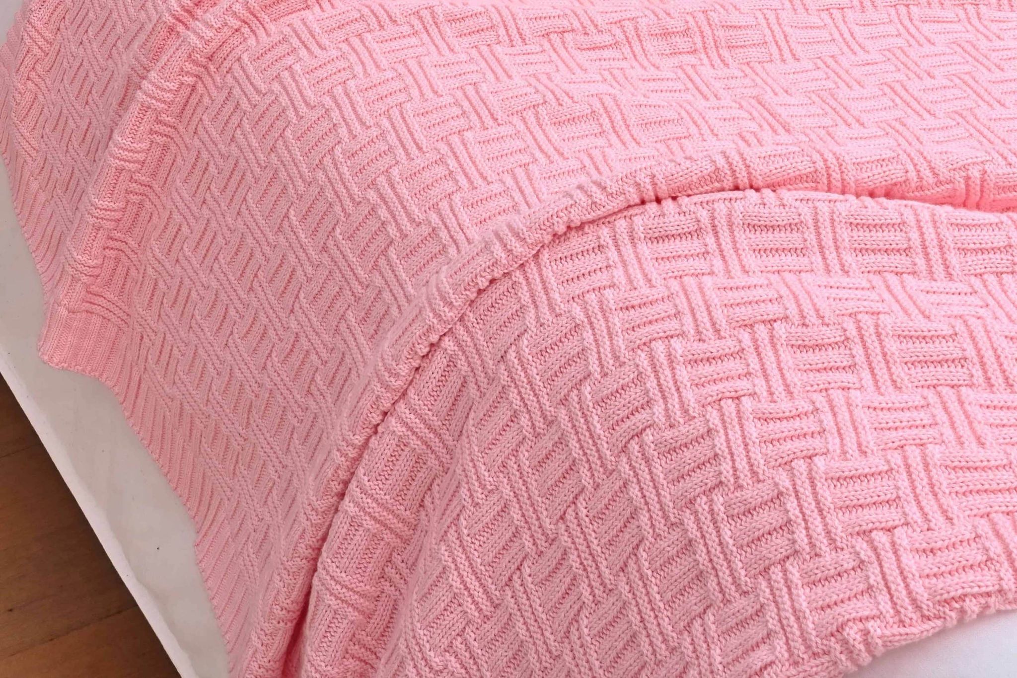 Basketweave Knitted Throw – Pink