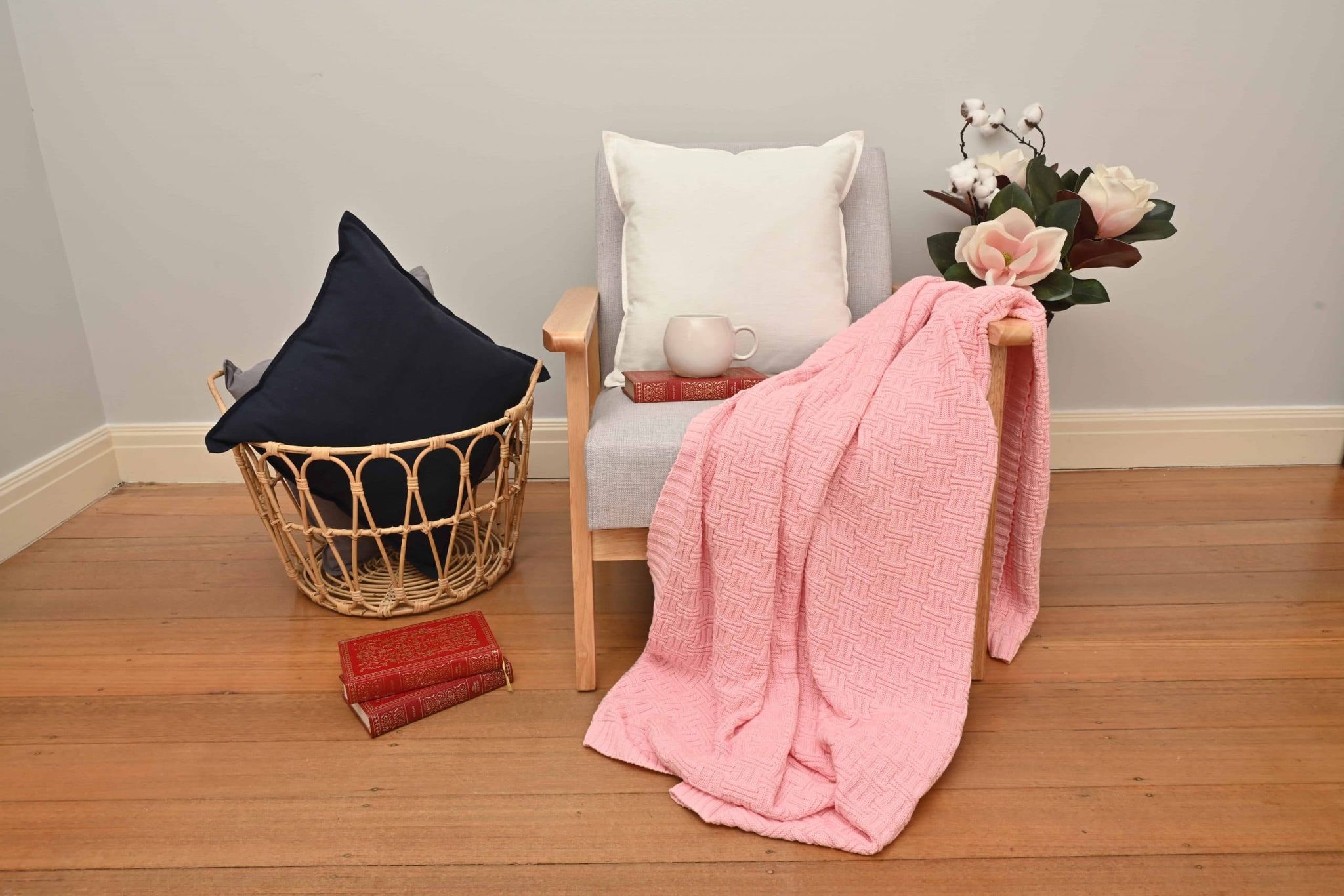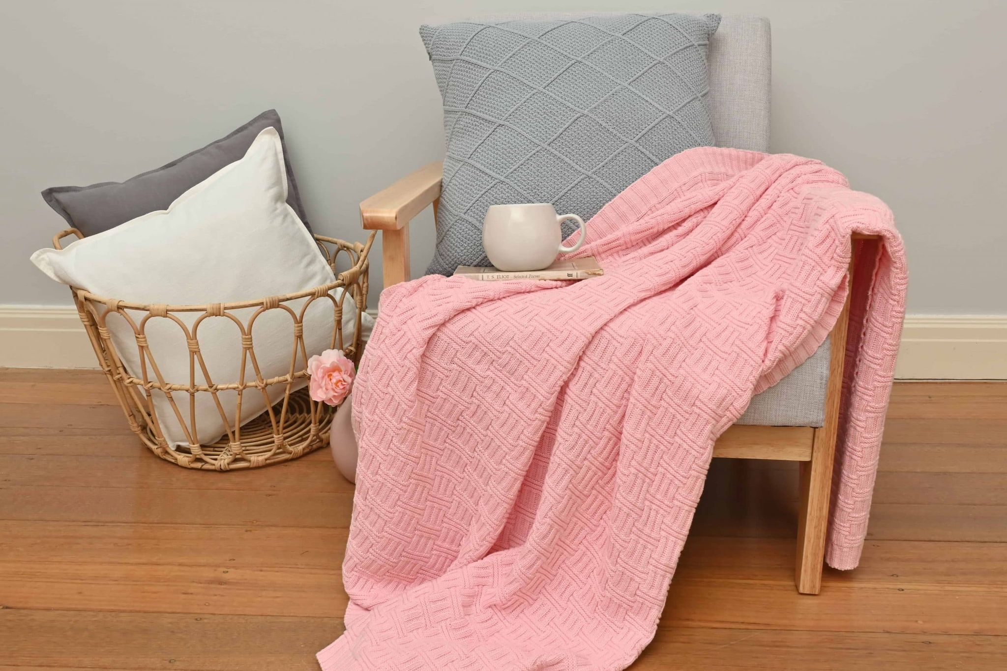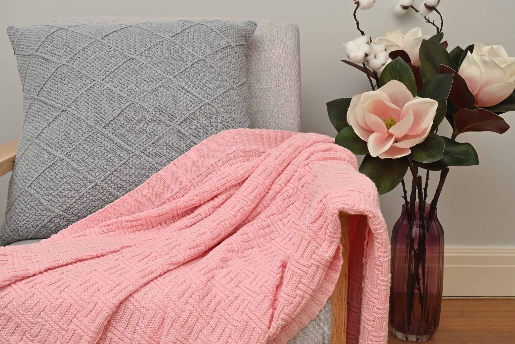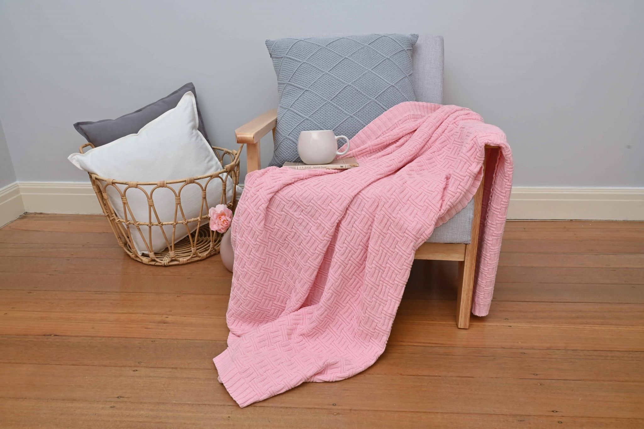Basketweave Knitted Throw – Pink
