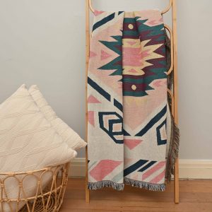 Reversible Geometric Pattern / Yarn dyed / Woven Jacquard style / Comfortable and breathable / Delicate fringe / Anti-pilling