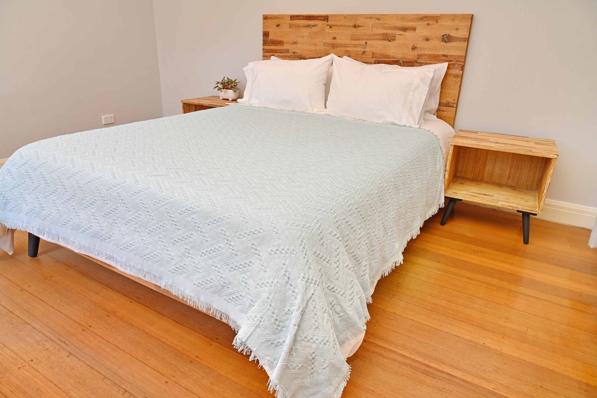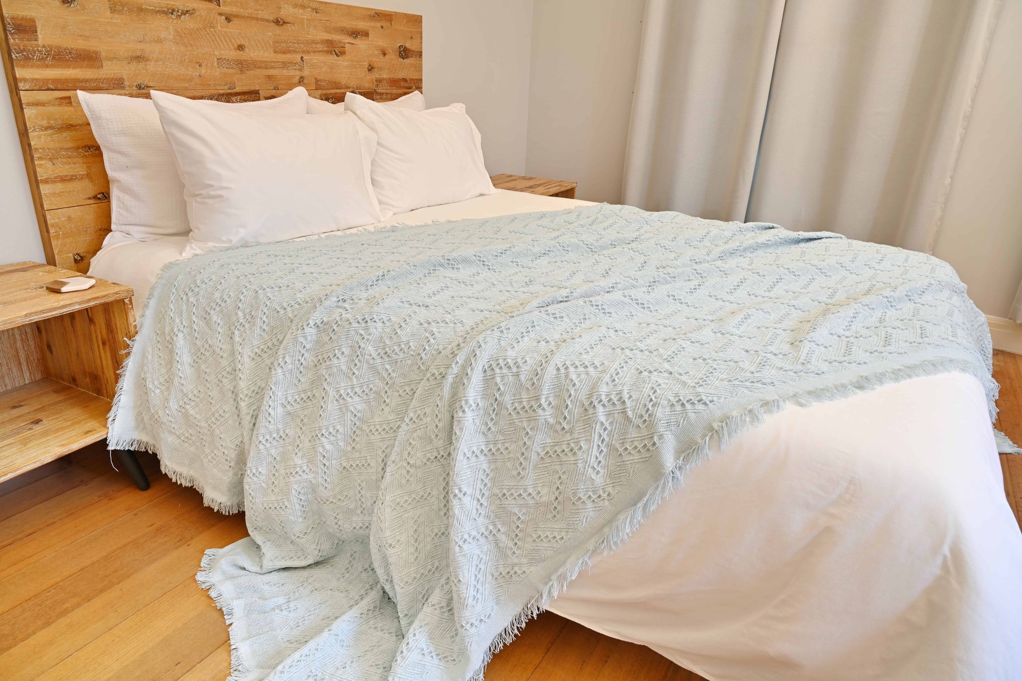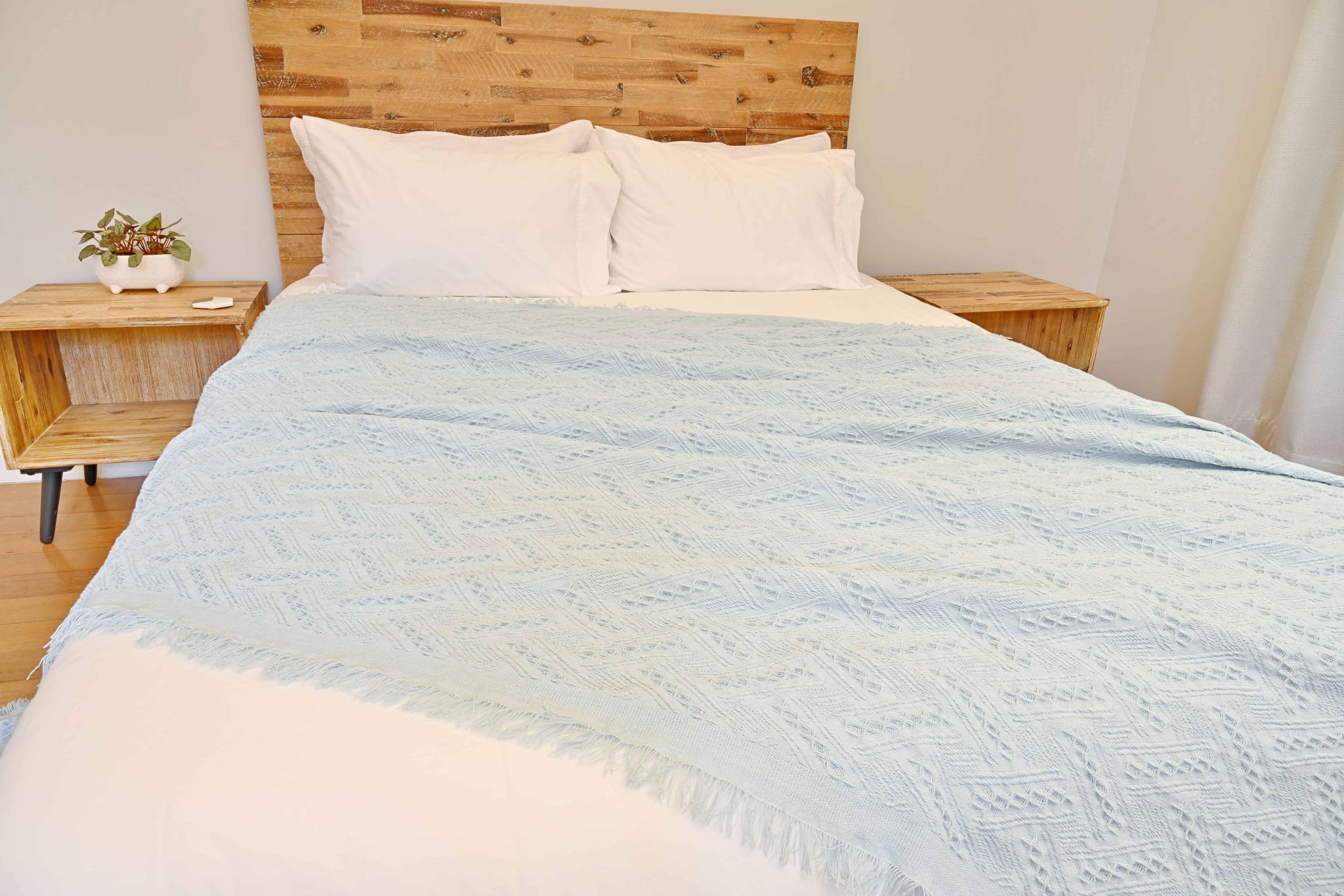 Vintage Style Woven Throw Medium Large Sky Blue